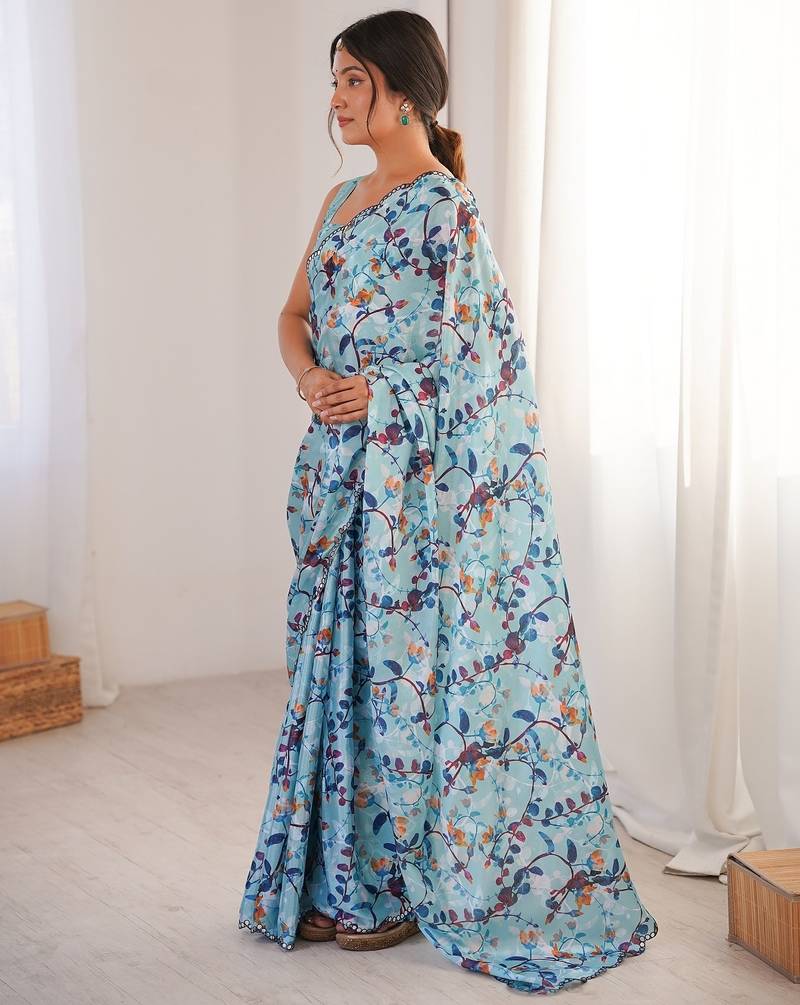 Women party wear digital print heavy chinnon saree with un sttiched blouse