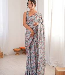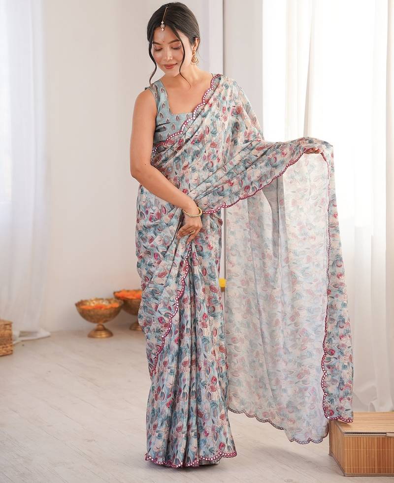 Women party wear digital print heavy chinnon saree with un sttiched blouse