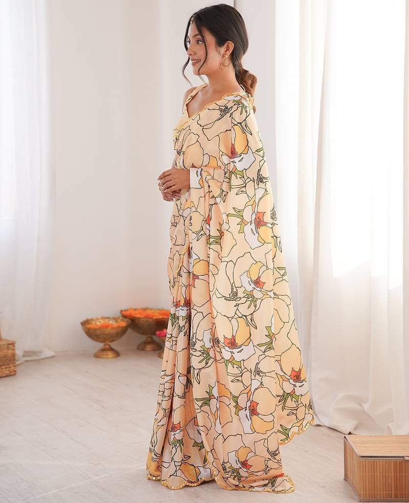 Women party wear digital print heavy chinnon saree with un sttiched blouse