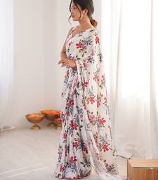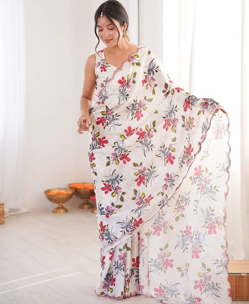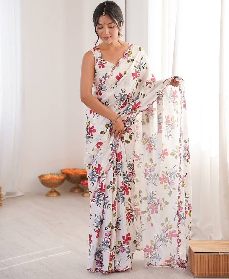Women party wear digital print heavy chinnon saree with un sttiched blouse