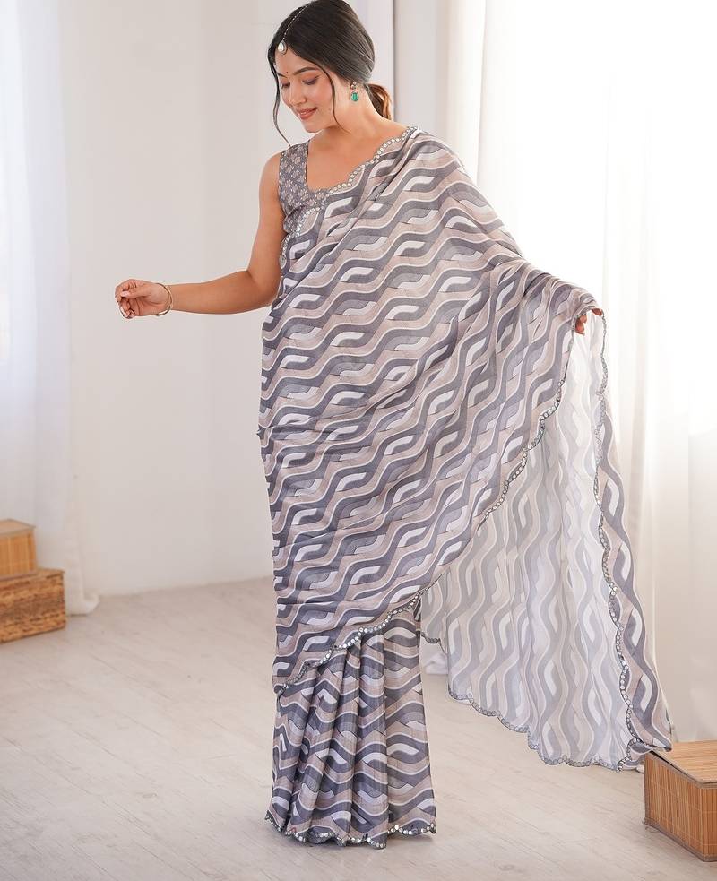 Women party wear digital print heavy chinnon saree with un sttiched blouse