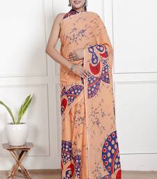 Women peach pure cotton printed bandhej ehtnic saree aay-64