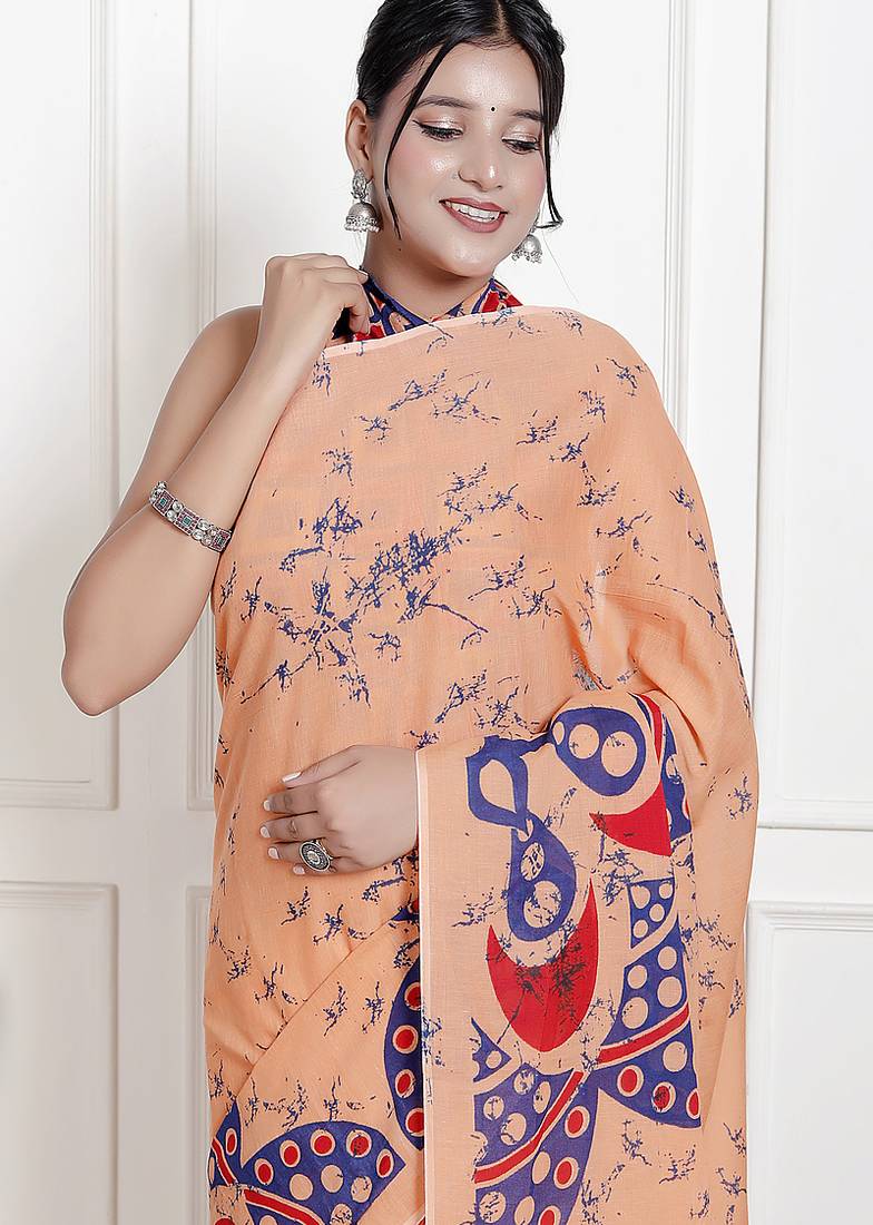 | Product Name | Women Peach Pure Cotton Printed Bandhej Ehtnic Saree Aay 64 | |