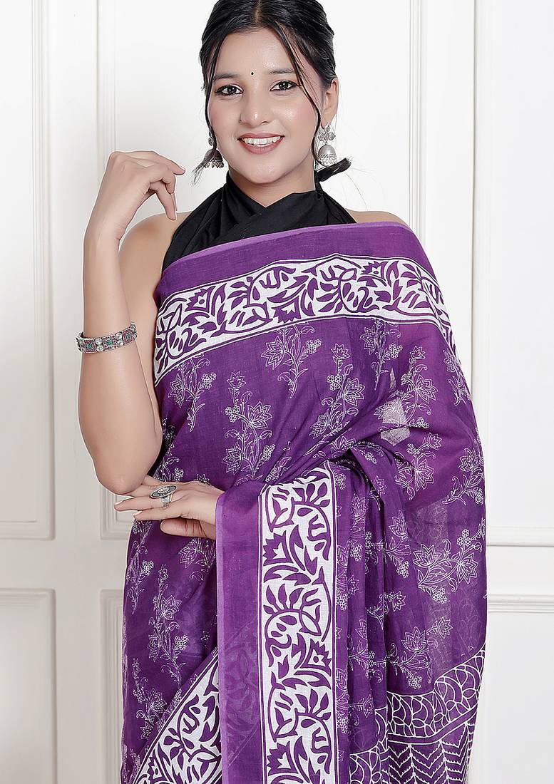 | • | Saree | : | Color- Purple / Fabric- Pure Cotton |