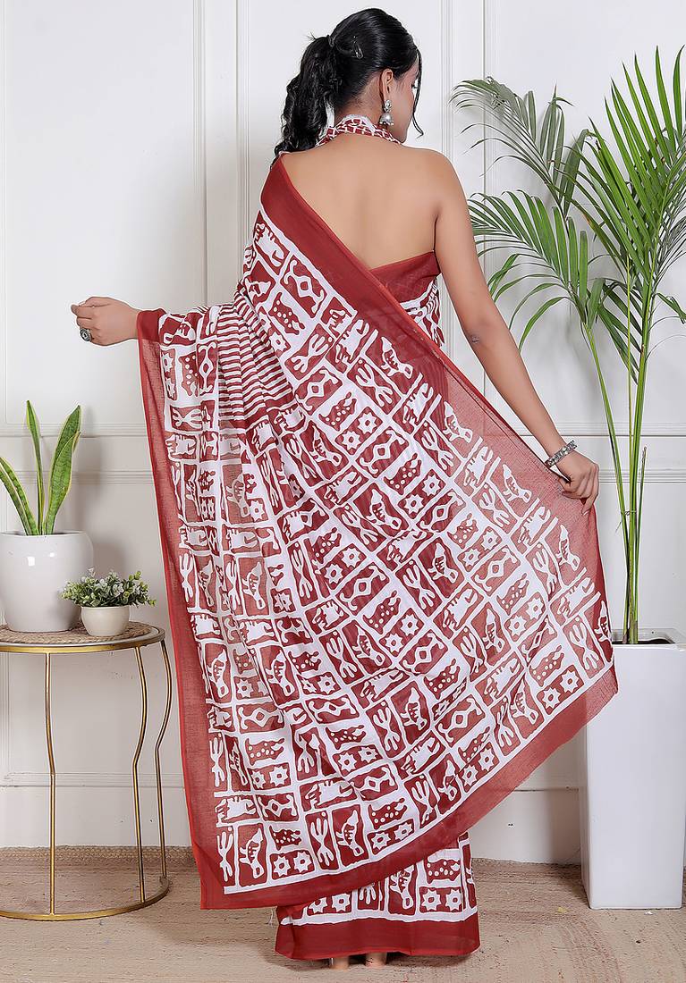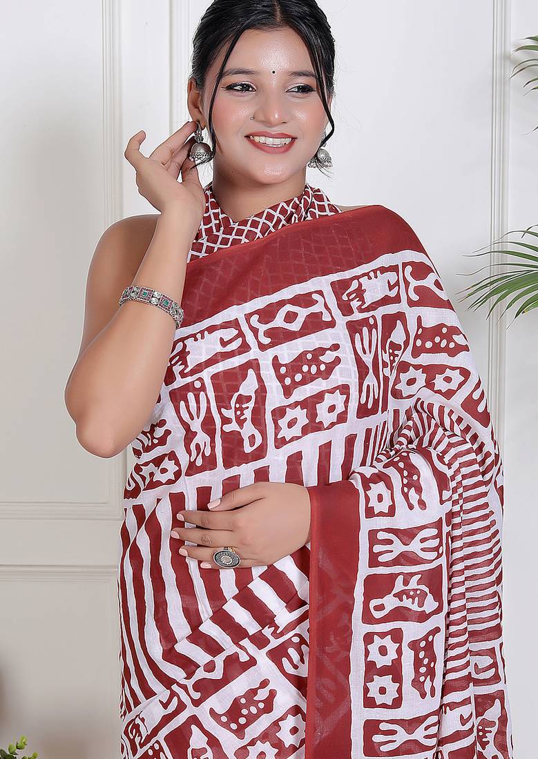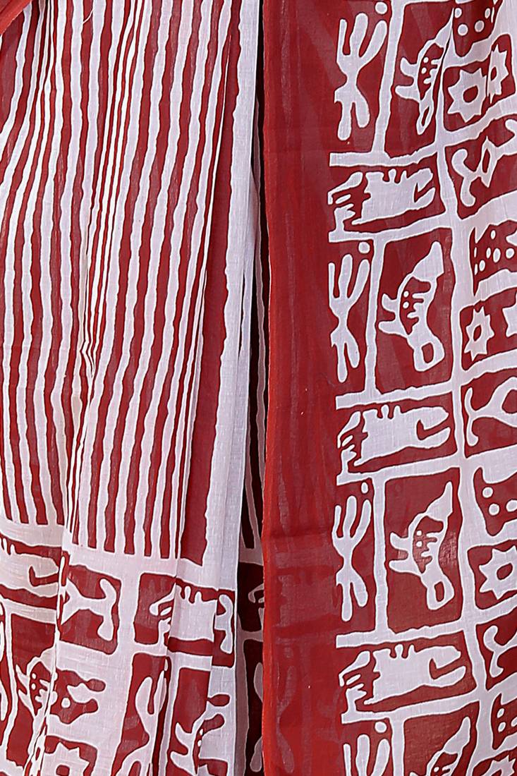 Women red pure cotton printed bandhej ehtnic saree aay-77