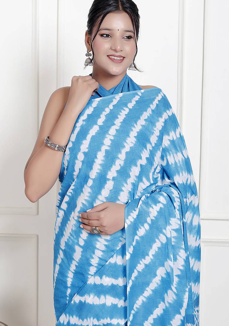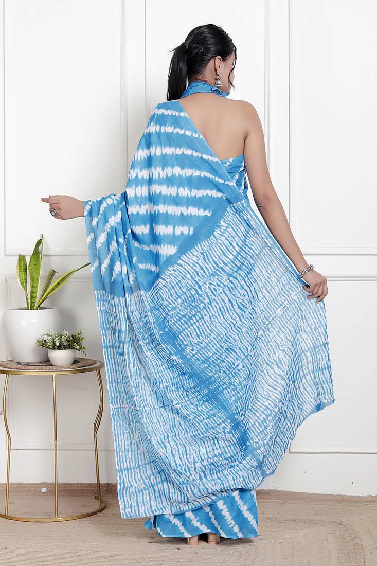 | Product Name | Women Sky Blue Pure Cotton Printed Bandhej Ehtnic Saree Aay 119 | |