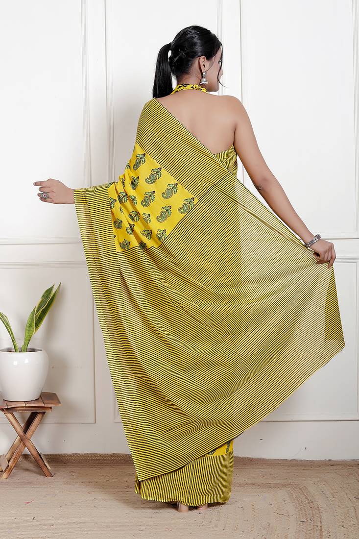 | • | Saree | : | Color- Yellow / Fabric- Pure Cotton |