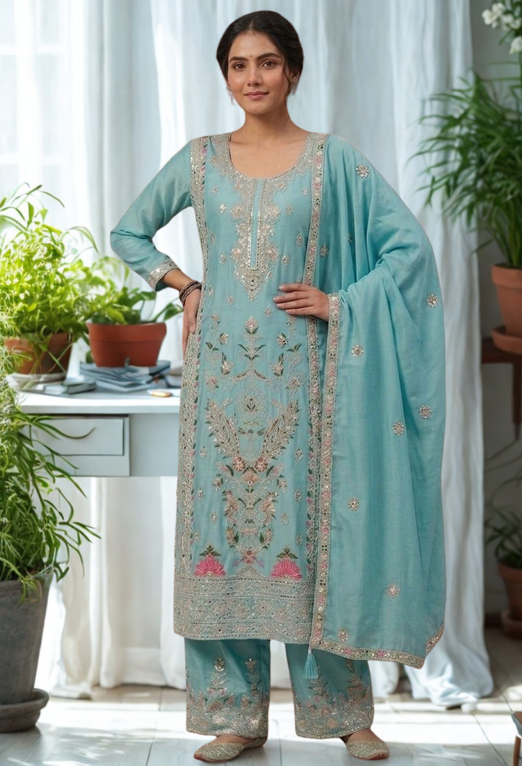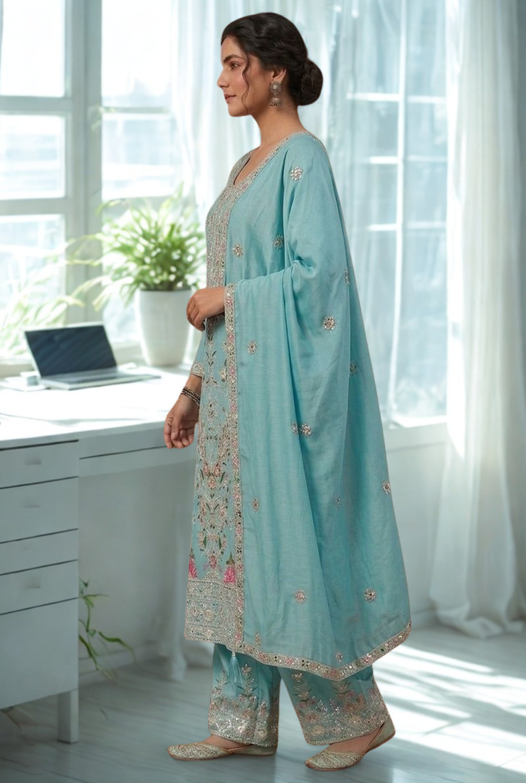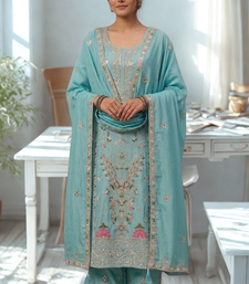 | Product Name | Blue Silk Kurta Heavy Embroidery Coding Sequence Work With Palazzo And Dupatta 3pc Set | |
