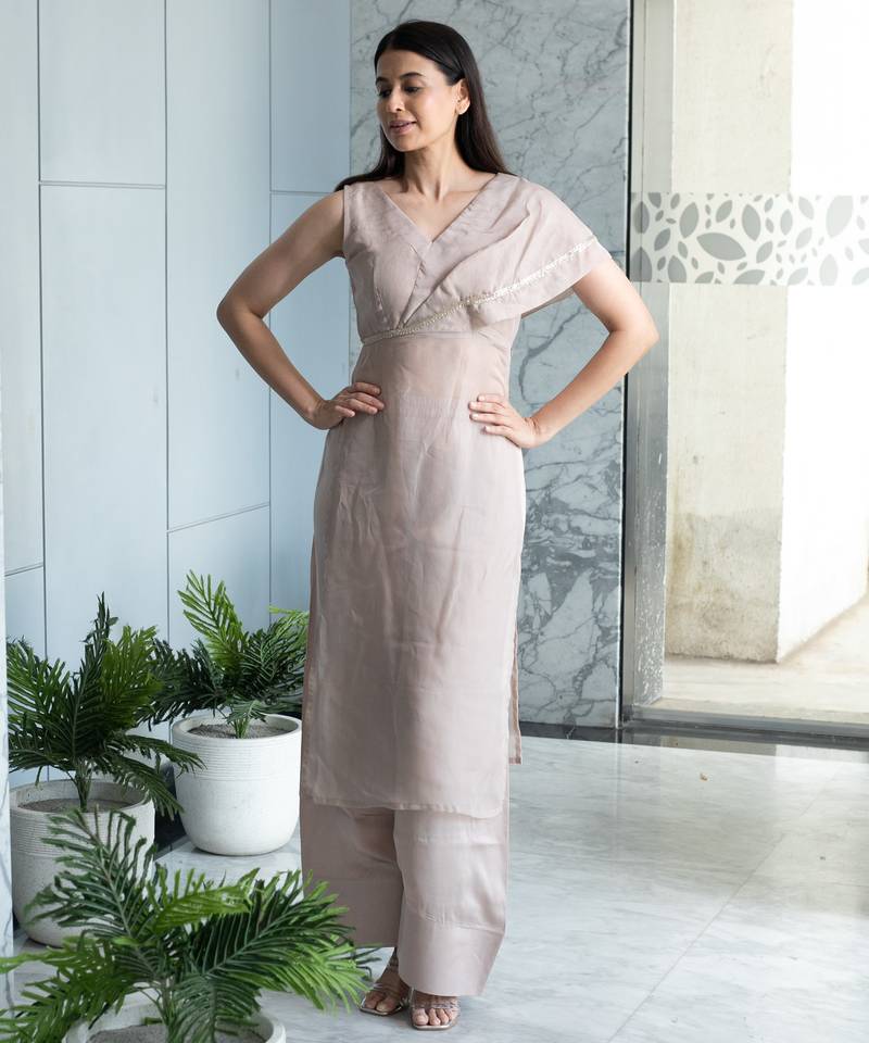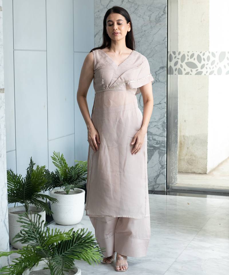 | Product Description | A Rose Pastel Kurta Set From The Pestal Line Collection, Designed For Minimal Elegance And Soft Sophistication Made With Modal (Vegan) Silk And Organza. |