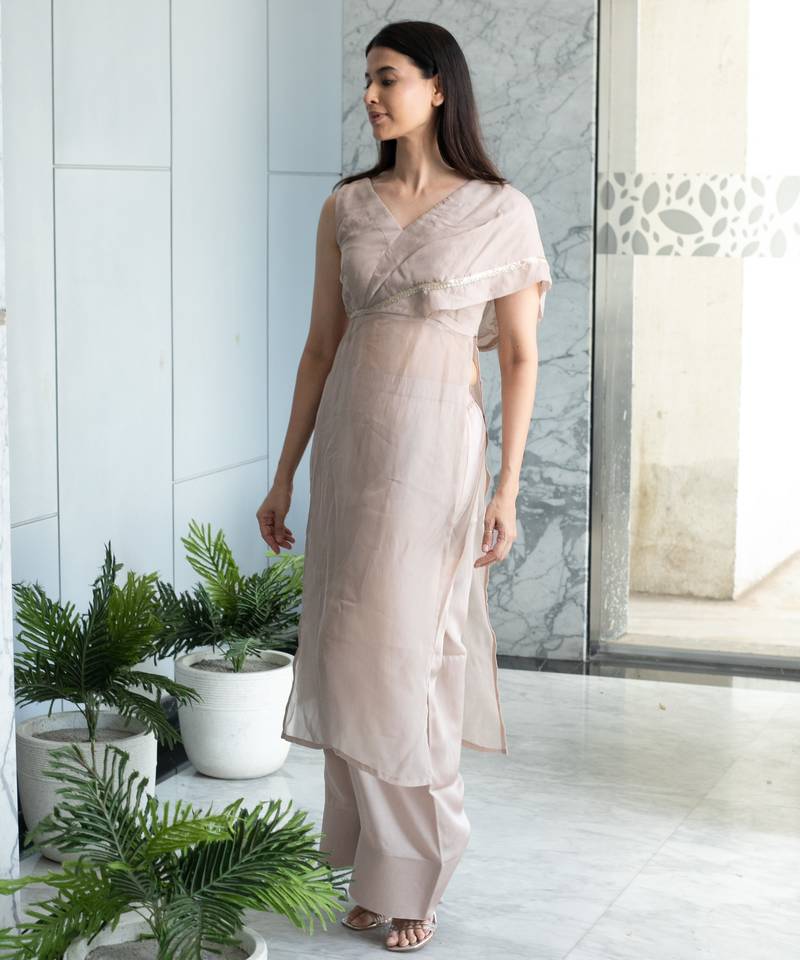 Dusty veil - elegant kurta set with farsi pants stitched