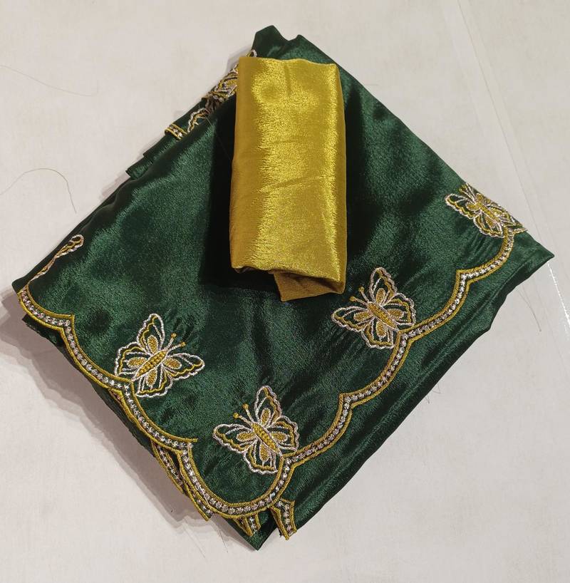 | Product Description | ** Fabric ** : Saree Chinon(Colour Green) || Blouse Chinon(Colour Musterd Yellow) ** Size ** : Saree 5.5 Meter || Blouse 1 Meter** Packege Contain ** : 1 Saree || 1 Unstitched Blouse Piece ** Detail ** : Designer Saree With Golden Zari Border || Solid Blouse ** Why Purchase? ** : Branded Product || Soft Finished || Comfortable To Wear || Best Quality In Best Price |