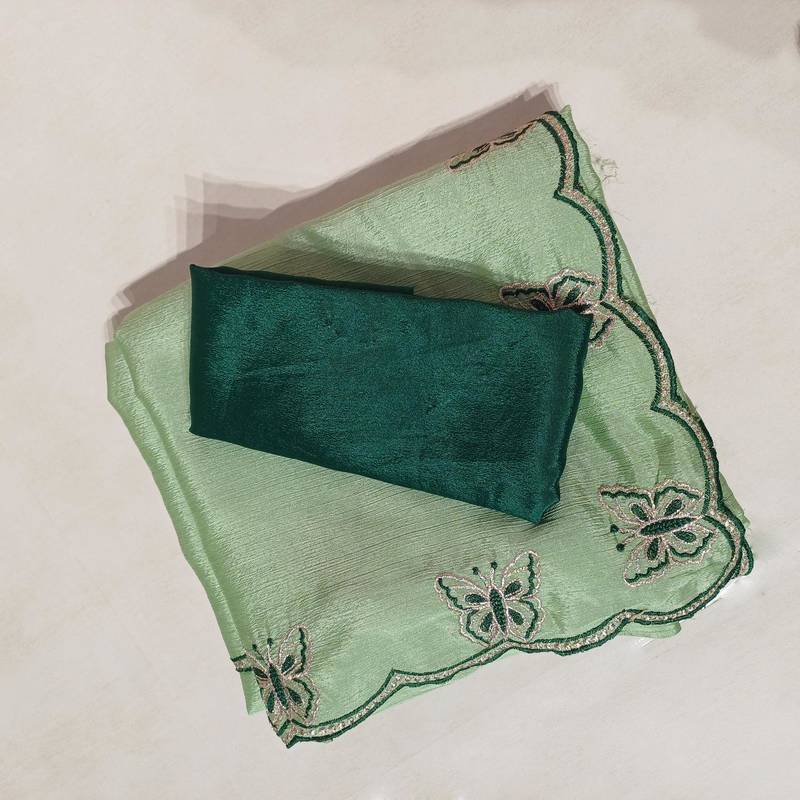 | Product Description | ** Fabric ** : Saree Chinon(Colour Pista) || Blouse Chinon(Colour Green) ** Size ** : Saree 5.5 Meter || Blouse 1 Meter** Packege Contain ** : 1 Saree || 1 Unstitched Blouse Piece ** Detail ** : Designer Saree With Golden Zari Border || Solid Blouse ** Why Purchase? ** : Branded Product || Soft Finished || Comfortable To Wear || Best Quality In Best Price |
