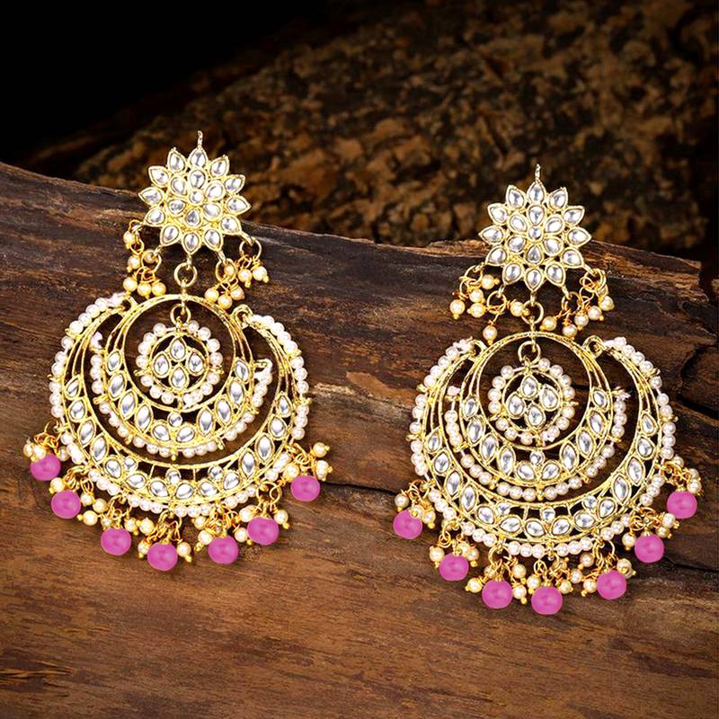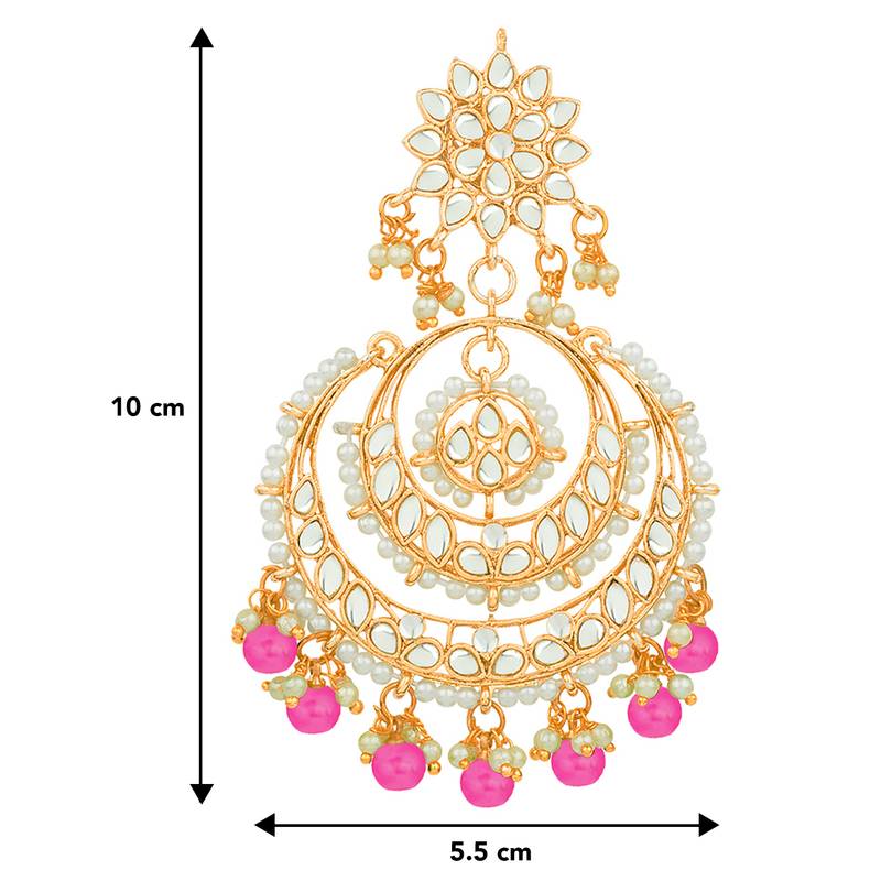 Peora gold plated indian ethnic bridal kundan pearl chandbali earrings fancy fashion traditional jewellery