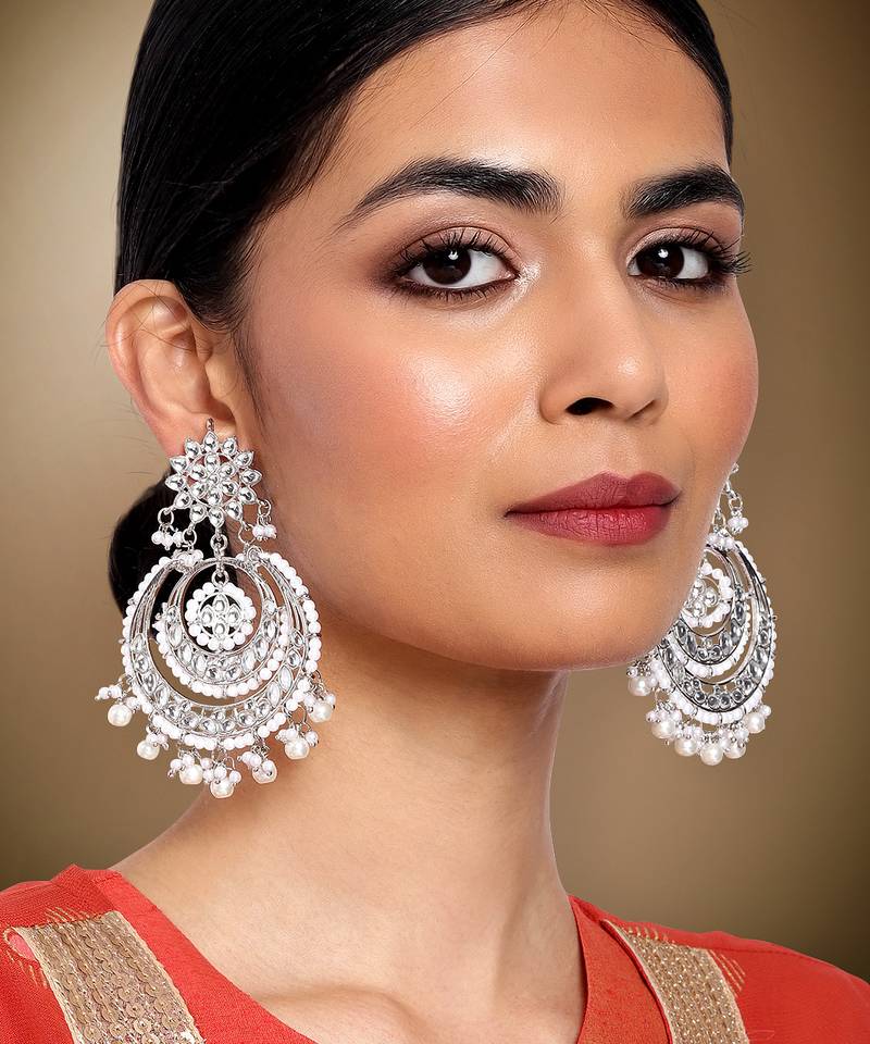 | Product Name | Peora Kundan & Pearl Studded Silver Plated Chandbali Earrings Gift For Women Girls | |