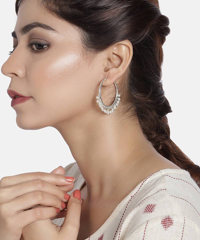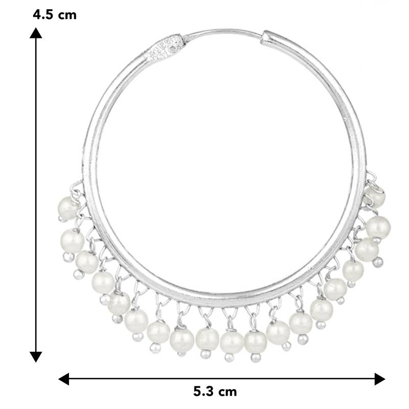 Peora silver plated pearl big circle large round chandbali earring for women indian traditional jewellery