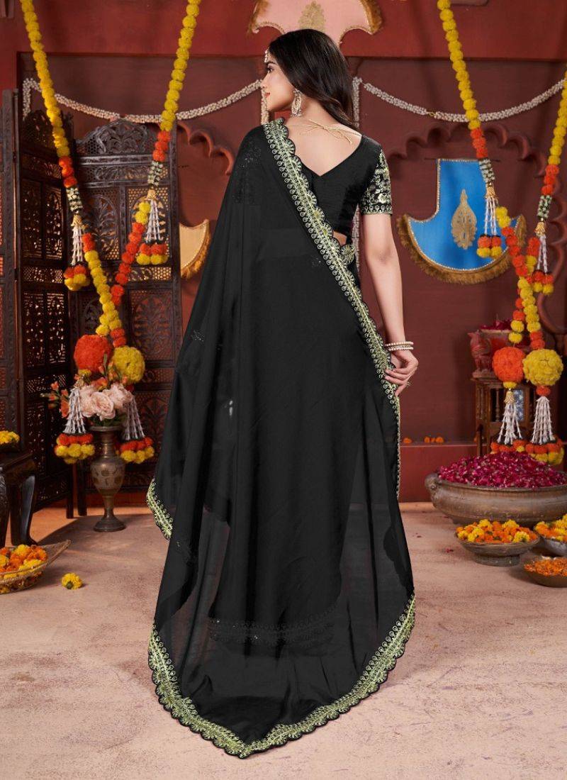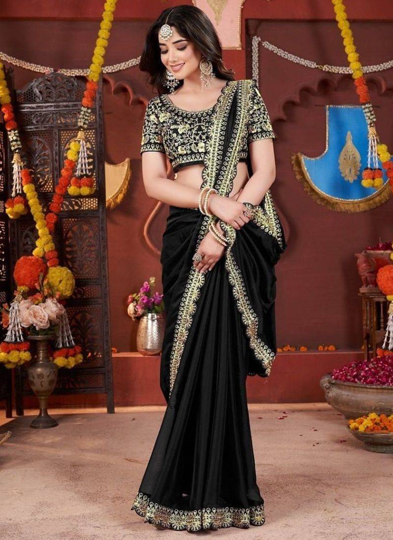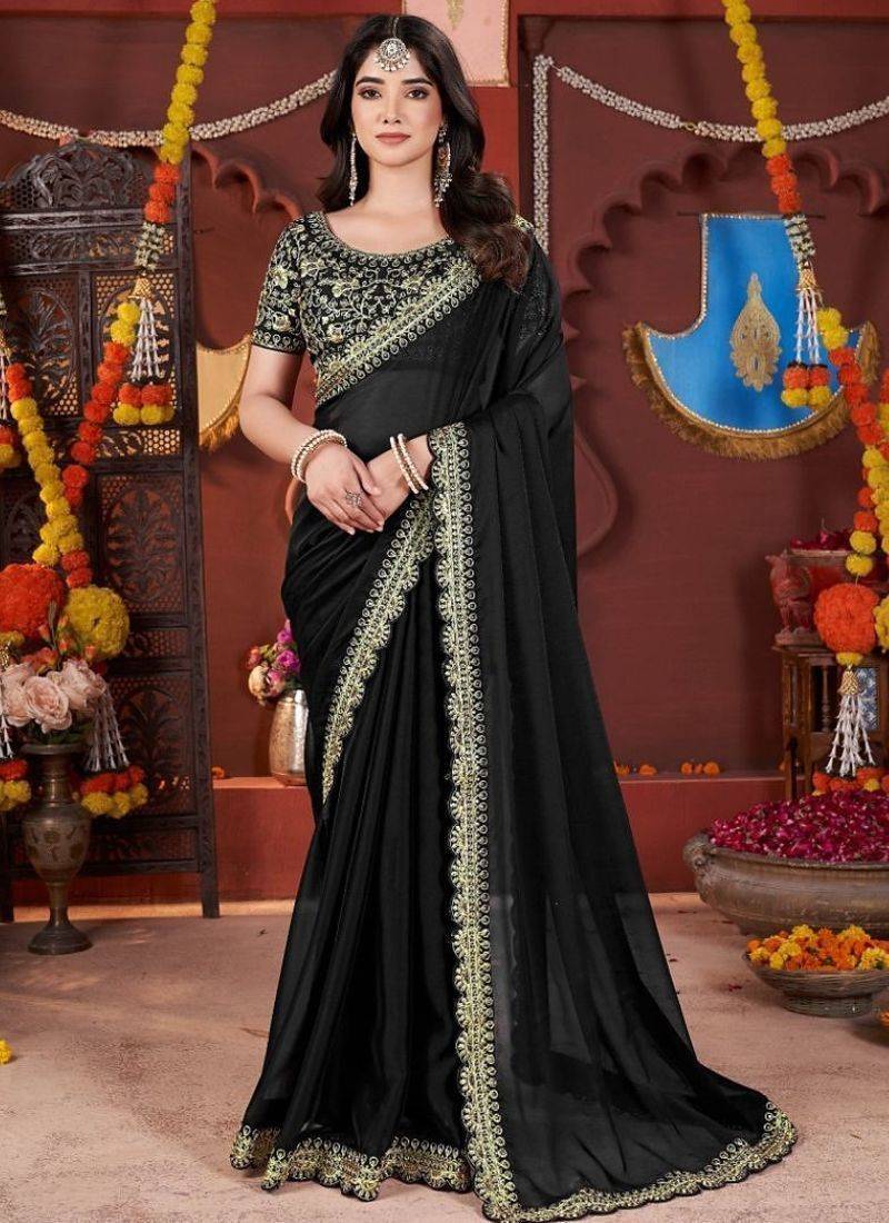 | Product Name | Designer Black Heavy Embroidered Silk Blend Party Wear Saree With Blouse | |
