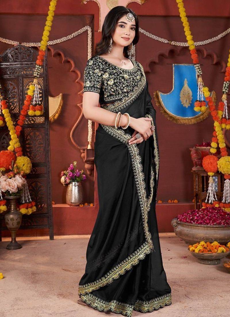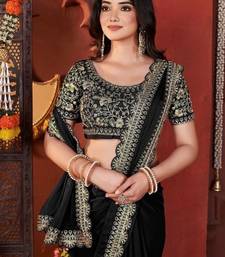 Designer black heavy embroidered silk blend party wear saree with blouse