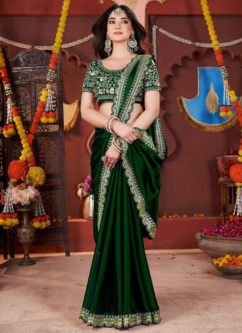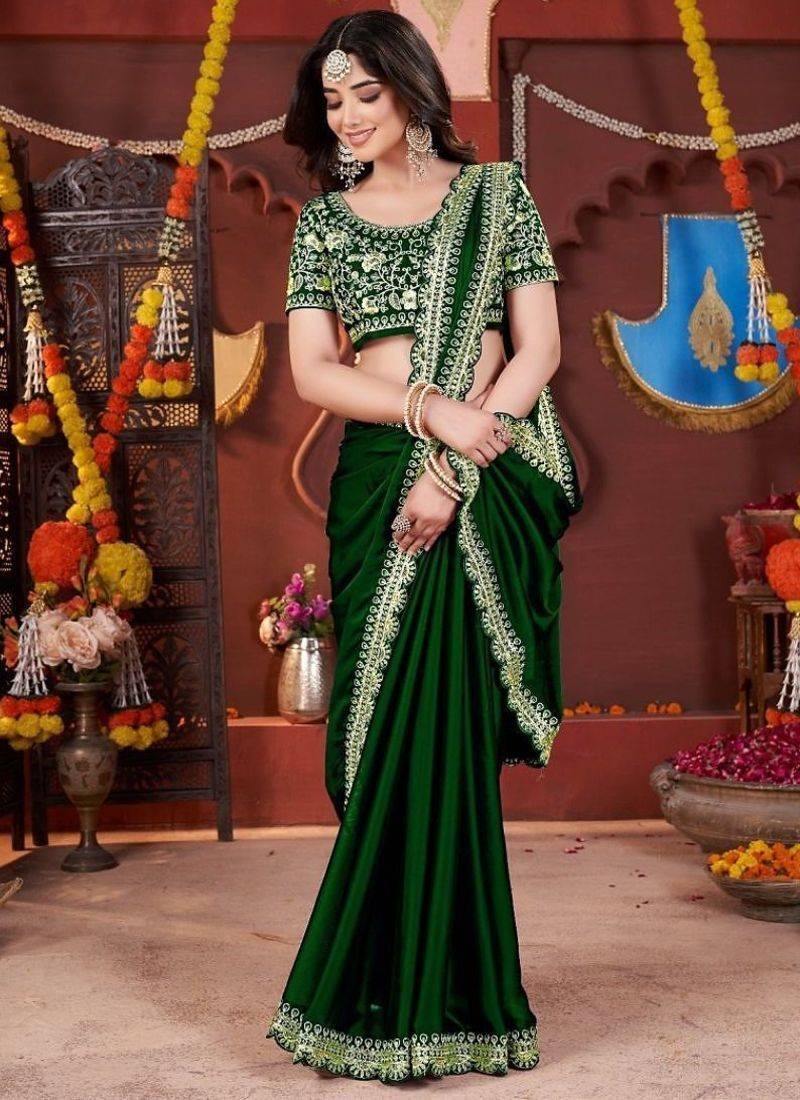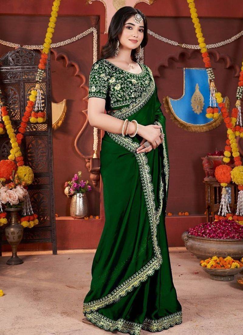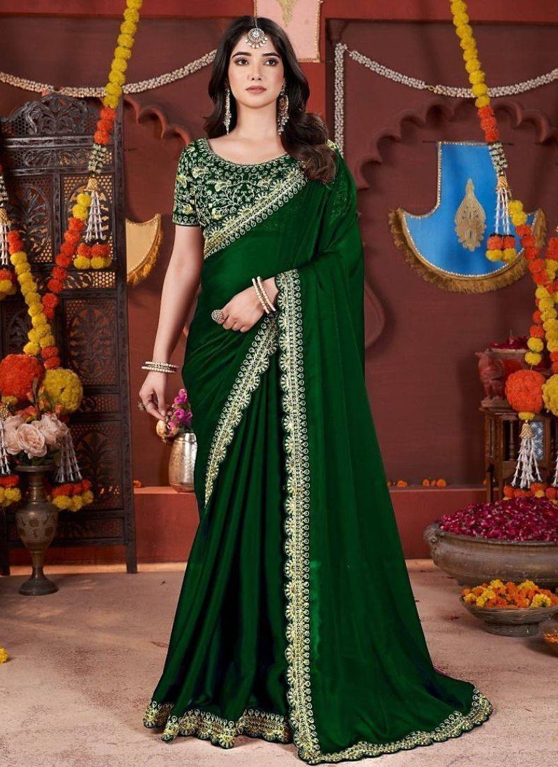 | Product Name | Designer Green Heavy Embroidered Silk Blend Party Wear Saree With Blouse | |