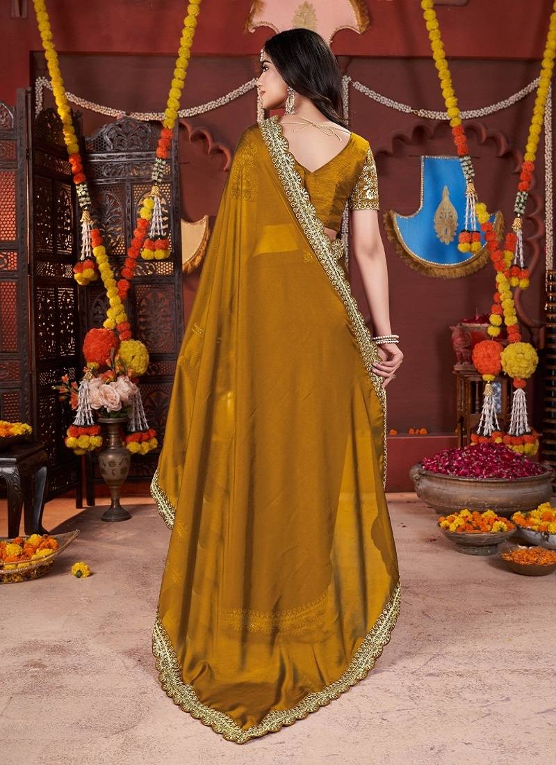 | Product Name | Designer Yellow Heavy Embroidered Silk Blend Party Wear Saree With Blouse | |