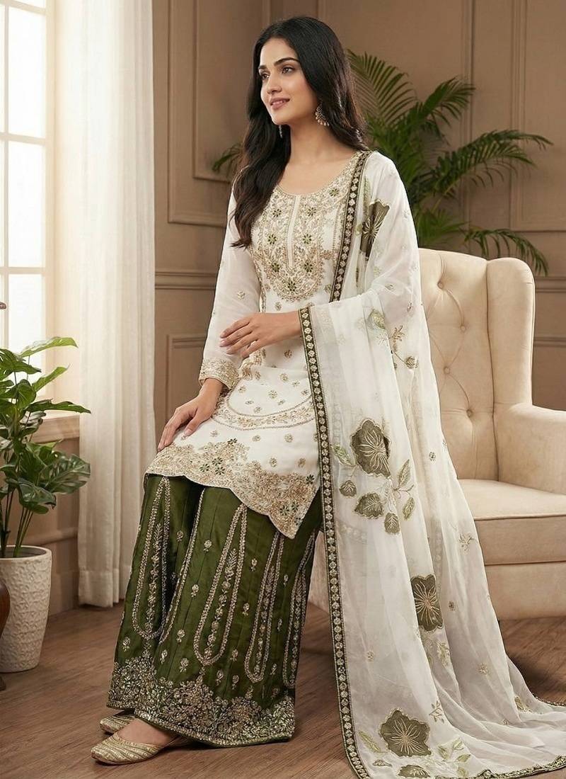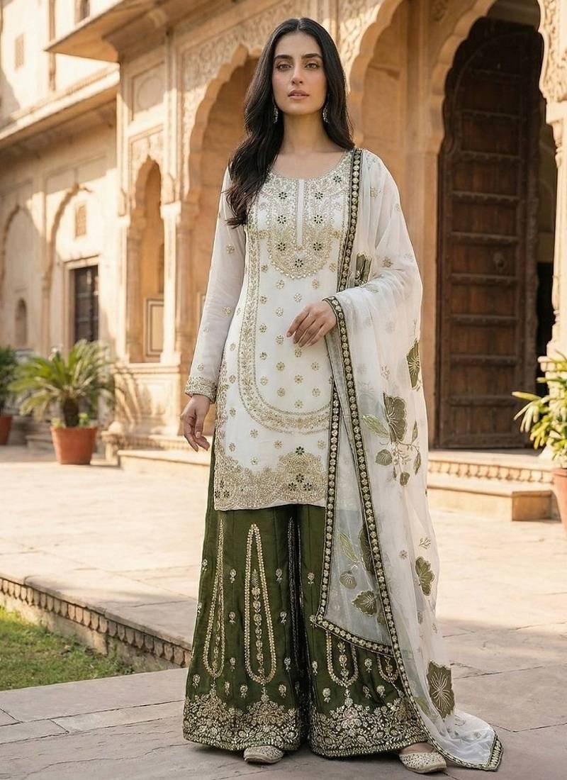 | Product Name | Mehendi Embroidered Kurta Sharara Set With Silk Dupatta Party Wear | |