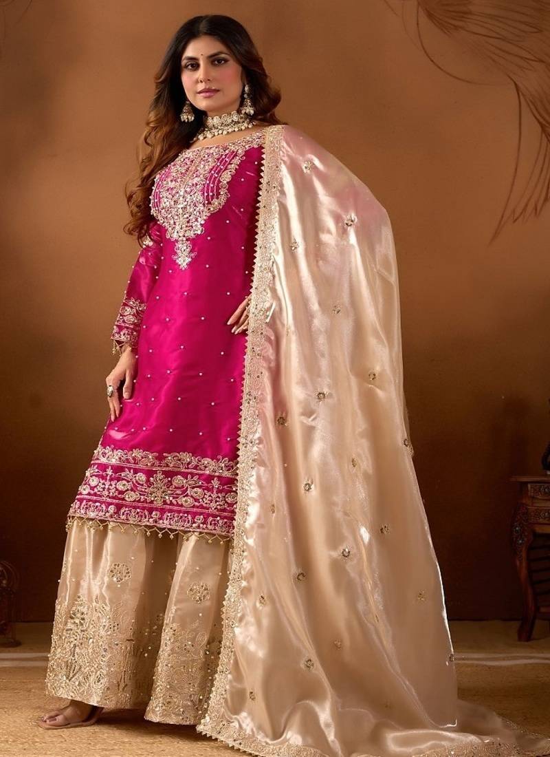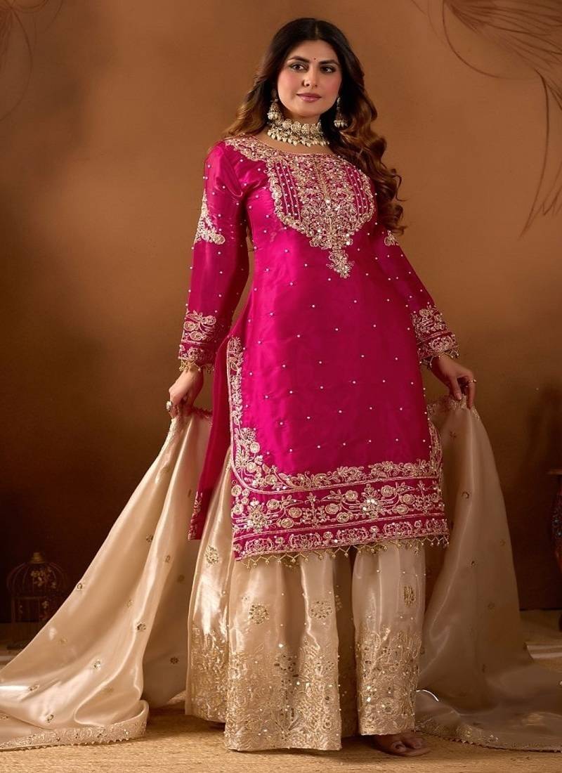 | Product Name | Pink Embroidered Kurta Sharara Set With Silk Dupatta Party Wear | |