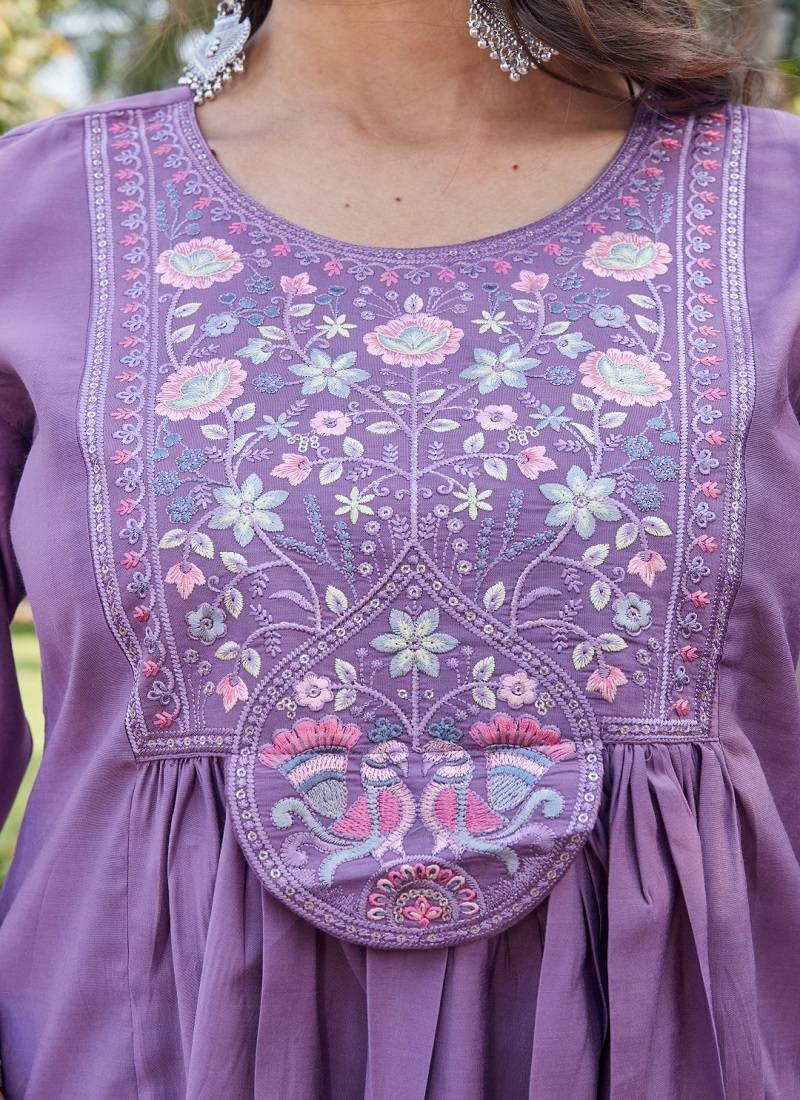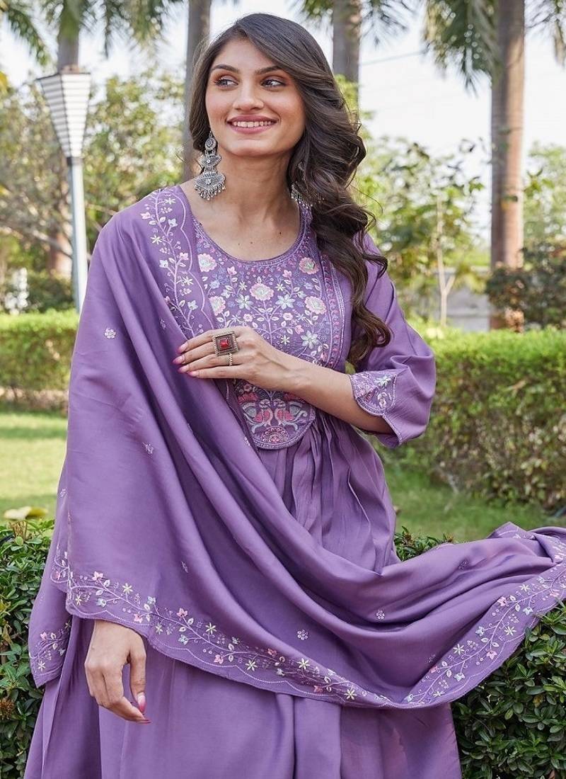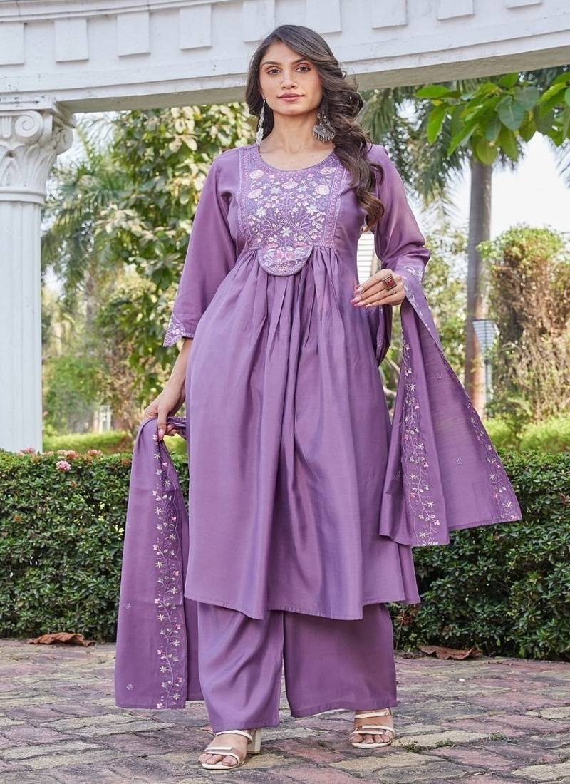 | Product Name | Purple Embroidered Kurta Pant Set With Silk Dupatta Party Wear | |