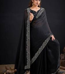 Black color fendi satin silk two tone handwork zircon border saree