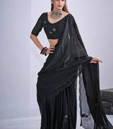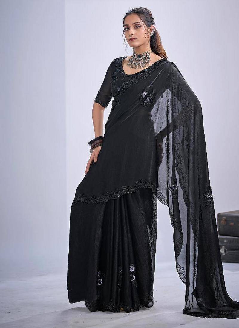 Black color fendy satin silk two tone zircon cut dana & sequence hand work saree