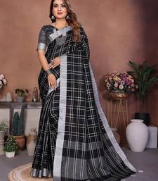 Black color linen cotton silver zari border & weaving saree with un-stitched blouse