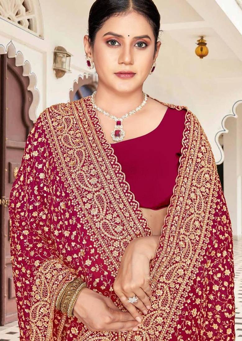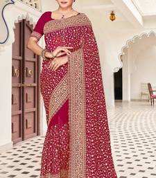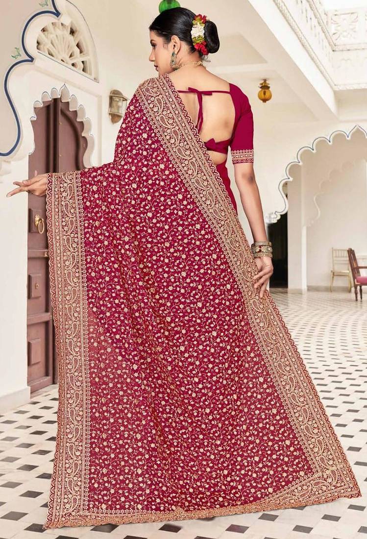 | Product Name | Cherry Color Georgette Zari Embroidered & Zircon Work Saree | |