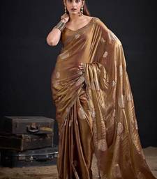 Chiku color fendi silk two ton with foil handwork zircon work saree