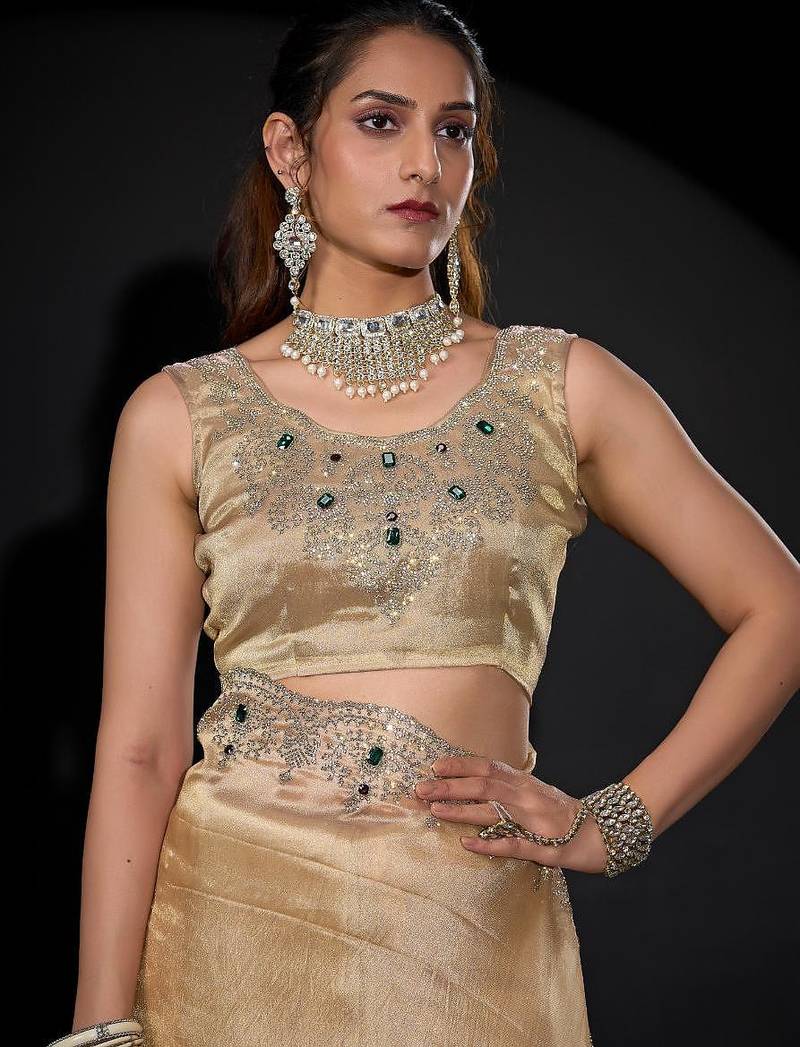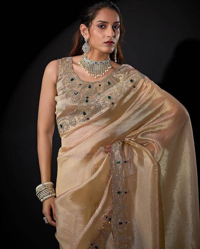 | • | Blouse | : | Color- Chiku / Fabric- Pure Kanjivaram Silk |