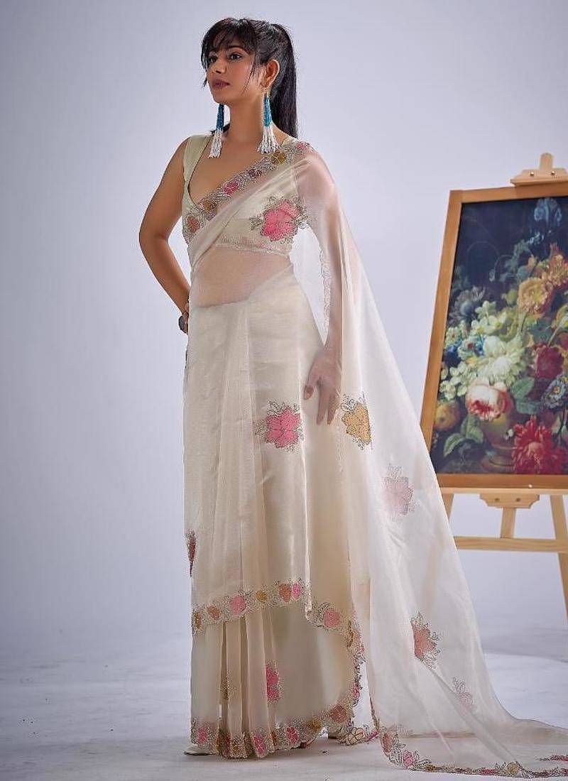 | Product Name | Chiku Color Soft Oregenza Tissue Handwork Zircon Border Saree | |
