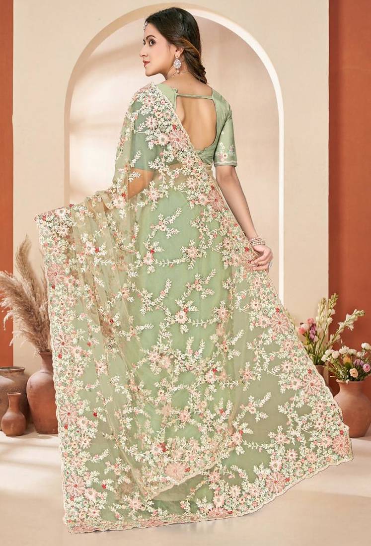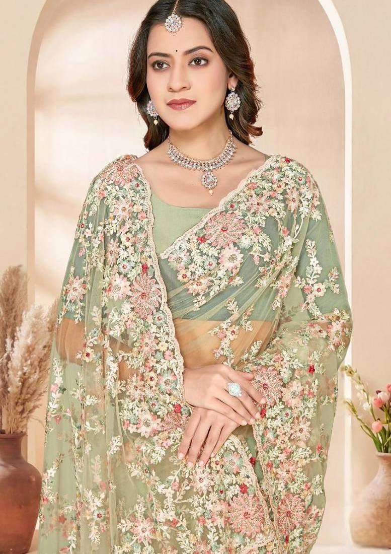 | Product Name | Dusty Pista Color Net Resham Embroidered & Zircon Work Saree | |
