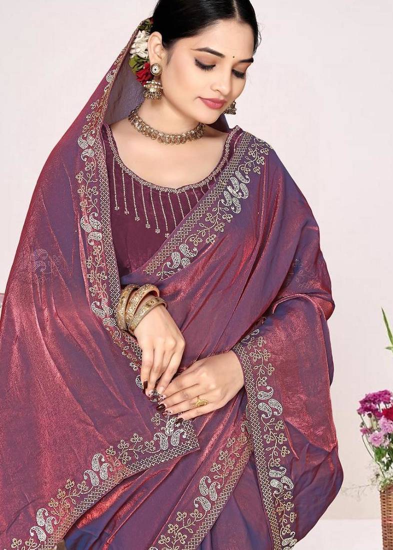 | Product Name | Dusty Purple Color Fendi Satin Silk Two Tone Zircon Work Saree | |