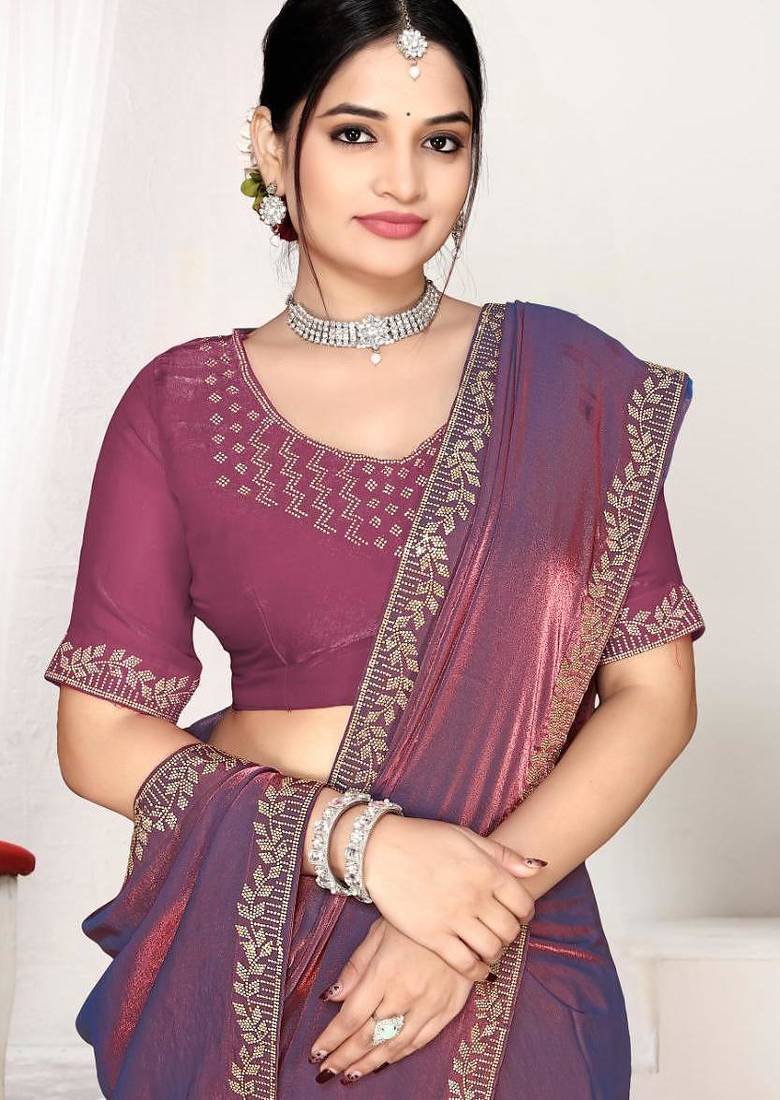 | Product Name | Dusty Purple Color Fendi Satin Silk Two Tone Zircon Work Saree | |