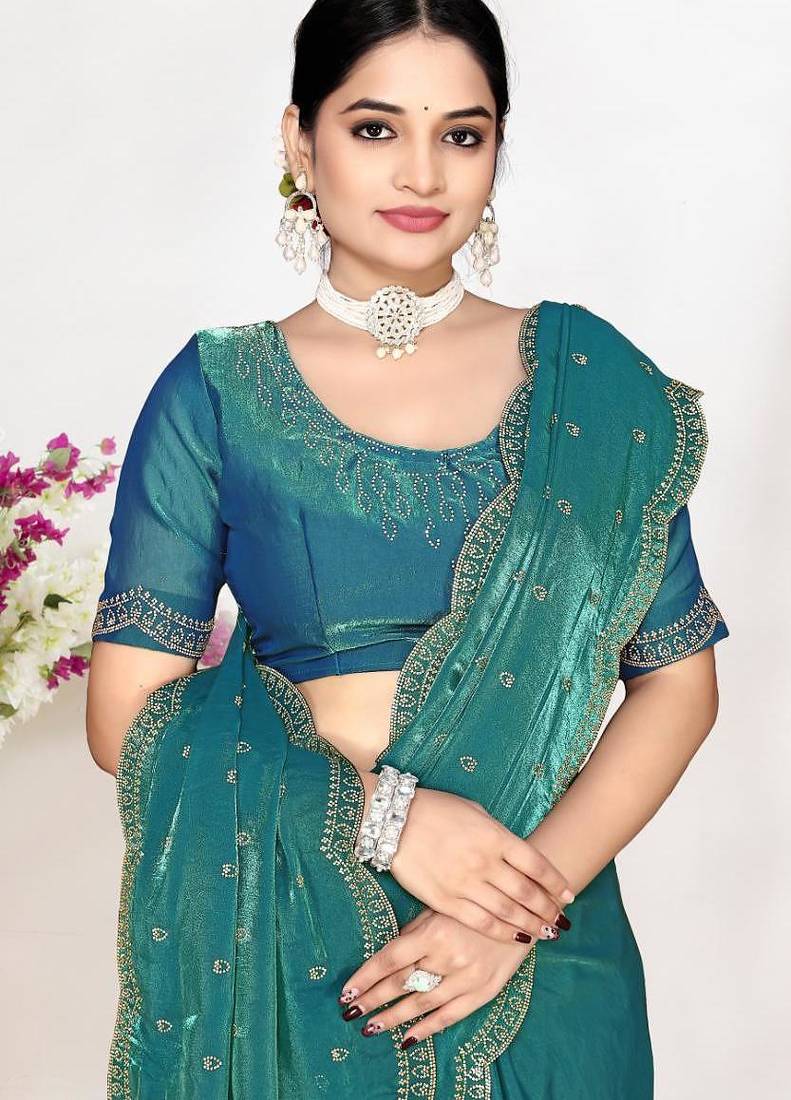 | Product Name | Firozi Color Fendi Satin Silk Two Tone Zircon Work Saree | |
