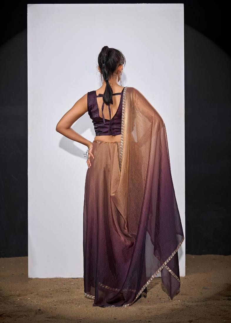 | Product Name | Gold & Purple Color Fendi Satin Silk Peding Zircon Handwork Saree | |