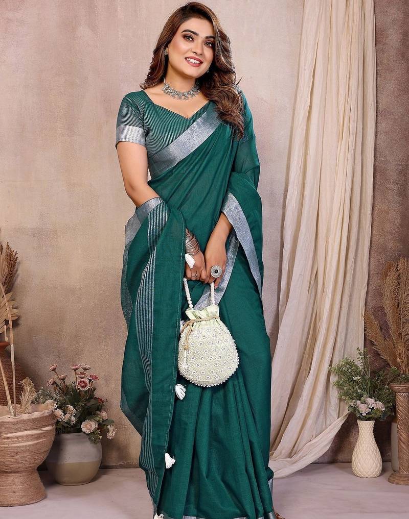 | Product Name | Green Color Linen Cotton Silver Zari Border Saree With Un Stitched Blouse | |