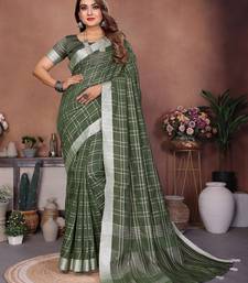 Green color linen cotton silver zari border & weaving saree with un-stitched blouse