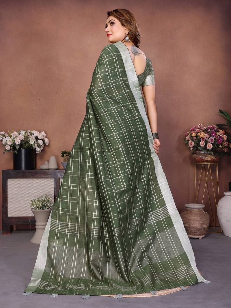 | Product Name | Green Color Linen Cotton Silver Zari Border & Weaving Saree With Un Stitched Blouse | |