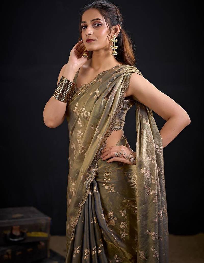 | Product Name | Grey Color Fendi Silk Two Tone With Foil & Hand Work Zircon Work Saree | |