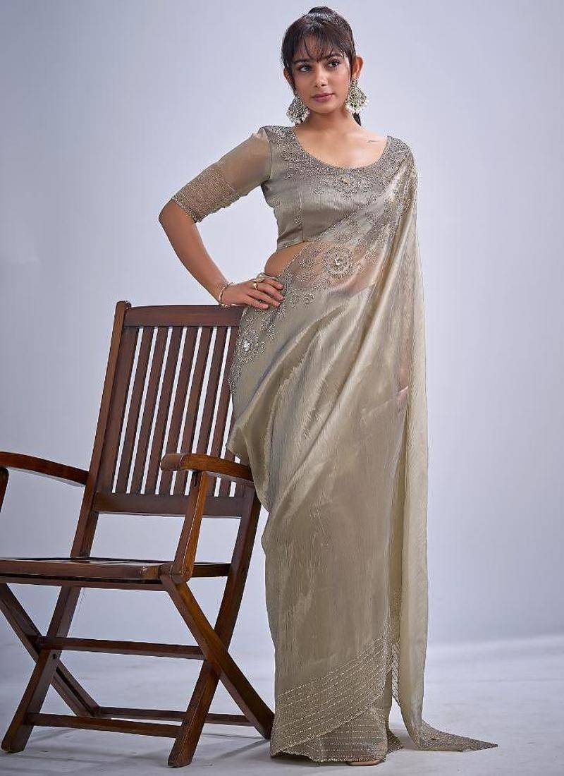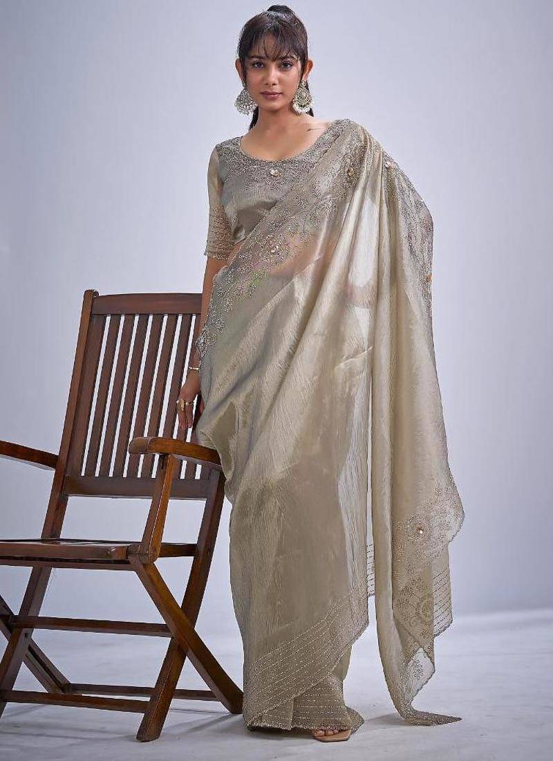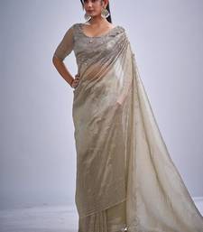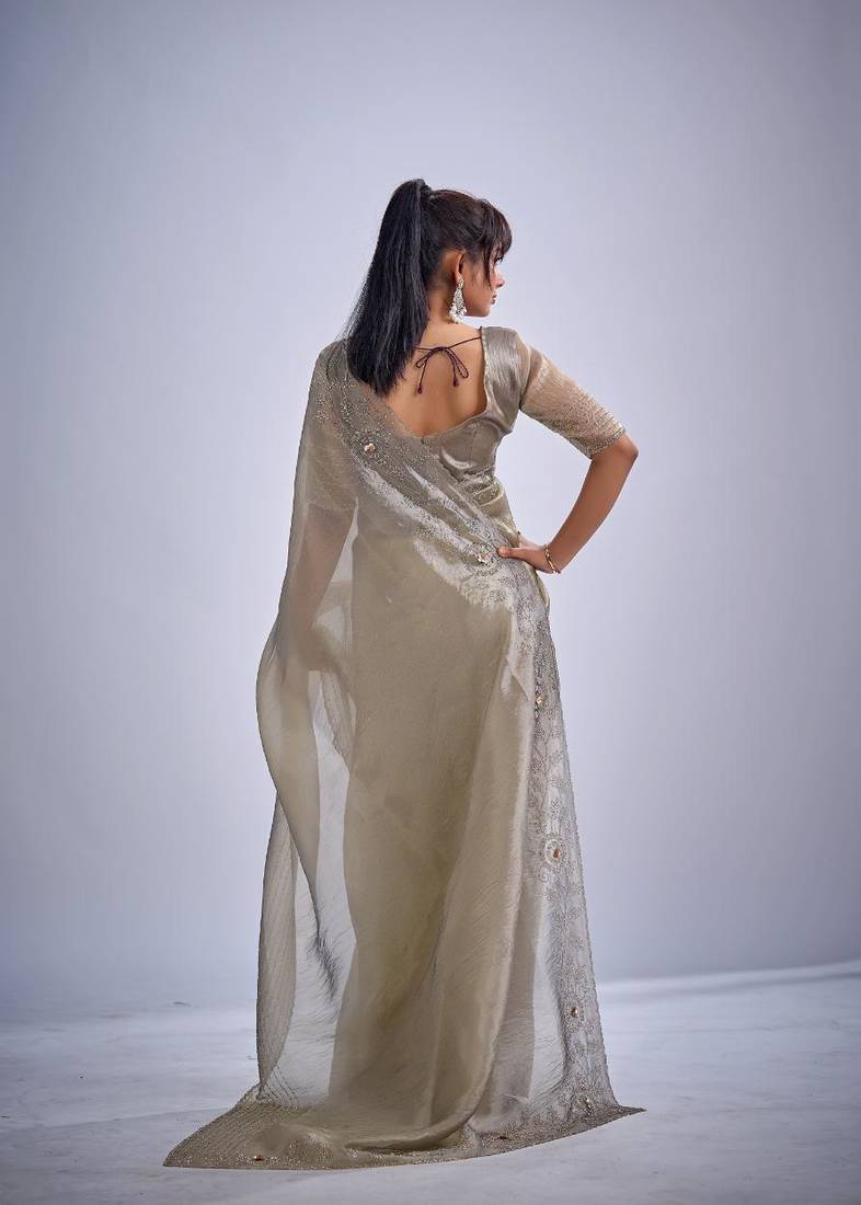 Grey color kanjivaram pure silk zircon cutdana & sequence handwork saree