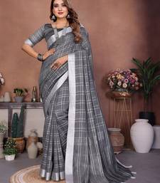 Grey color linen cotton silver zari border & weaving saree with un-stitched blouse