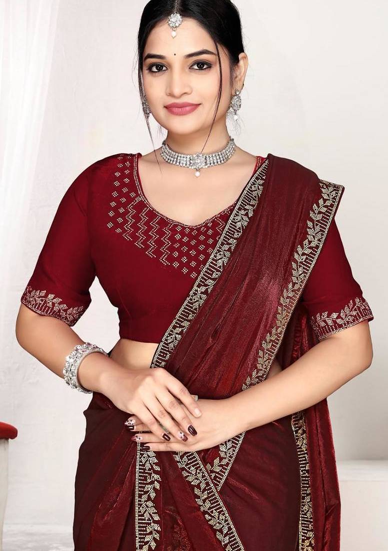 | Product Name | Maroon Color Fendi Satin Silk Two Tone Zircon Work Saree | |
