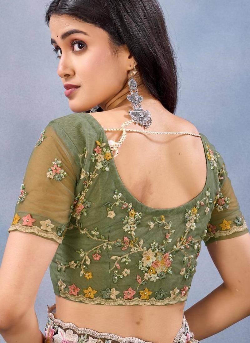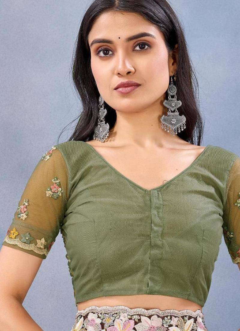 | • | Blouse | : | Color- Mehendi / Fabric- Net |