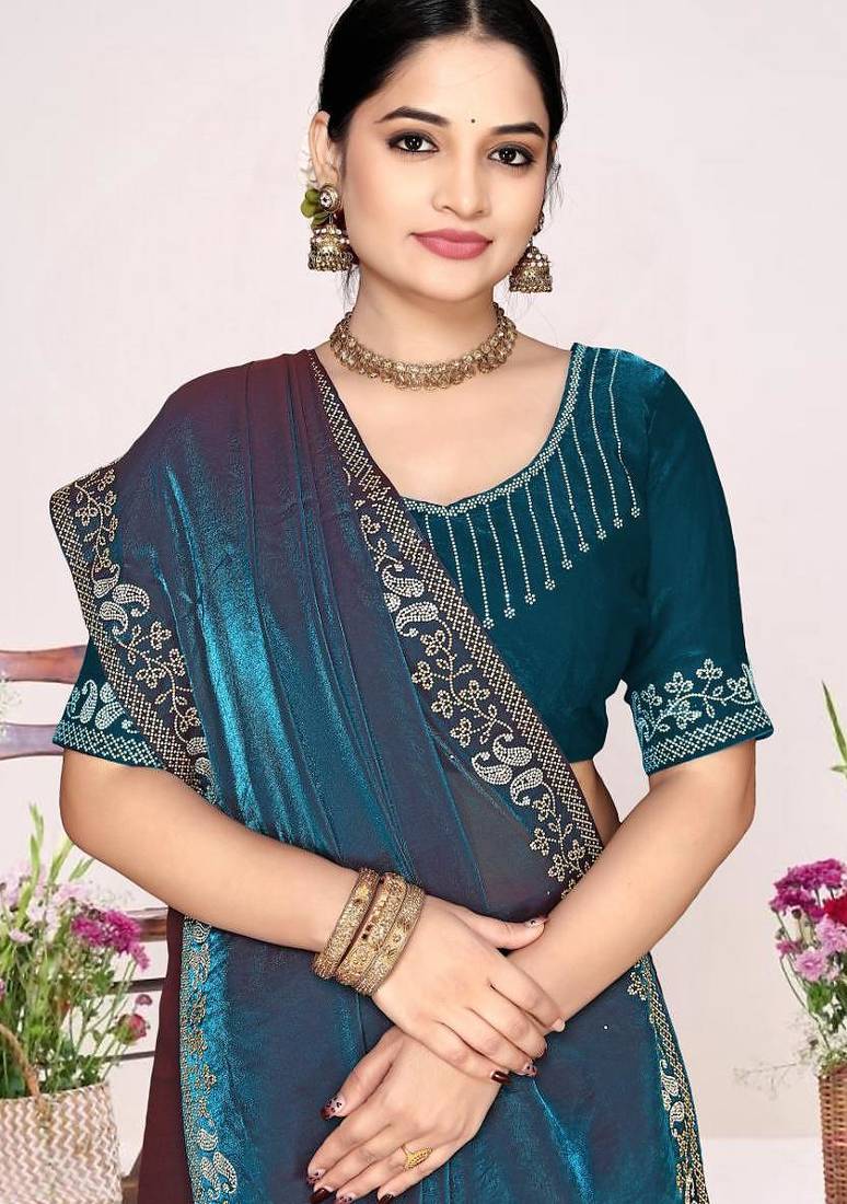 | Product Description | Heavy Fendi Satin Silk Two Ton Zircon Work Saree With Running Fabric Zircon Work Blouse |