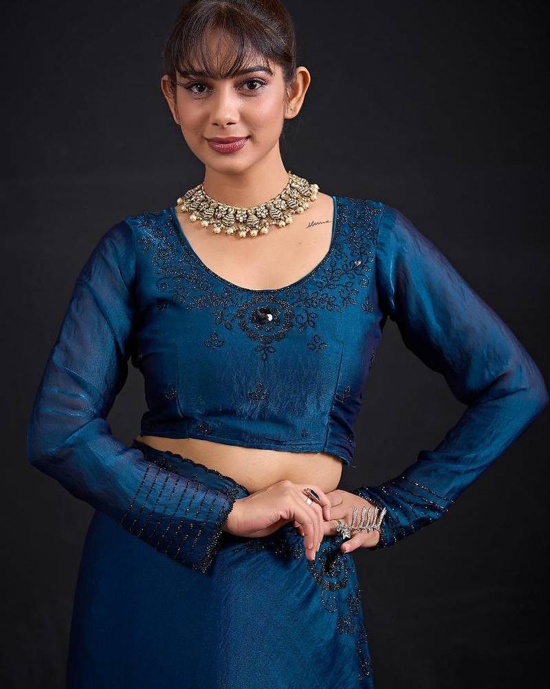 | Product Description | Designer Heavy Hand Work Zircon With Siqvence Hand Work Fendy Satin Silk Two Tone Saree Blouse |