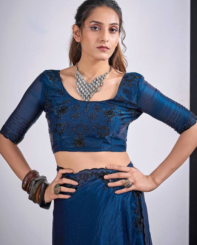 | Product Description | Designer Heavy Hand Work Zircon & Siqvence Butta Fendy Silk Two Tone Saree Blouse |
