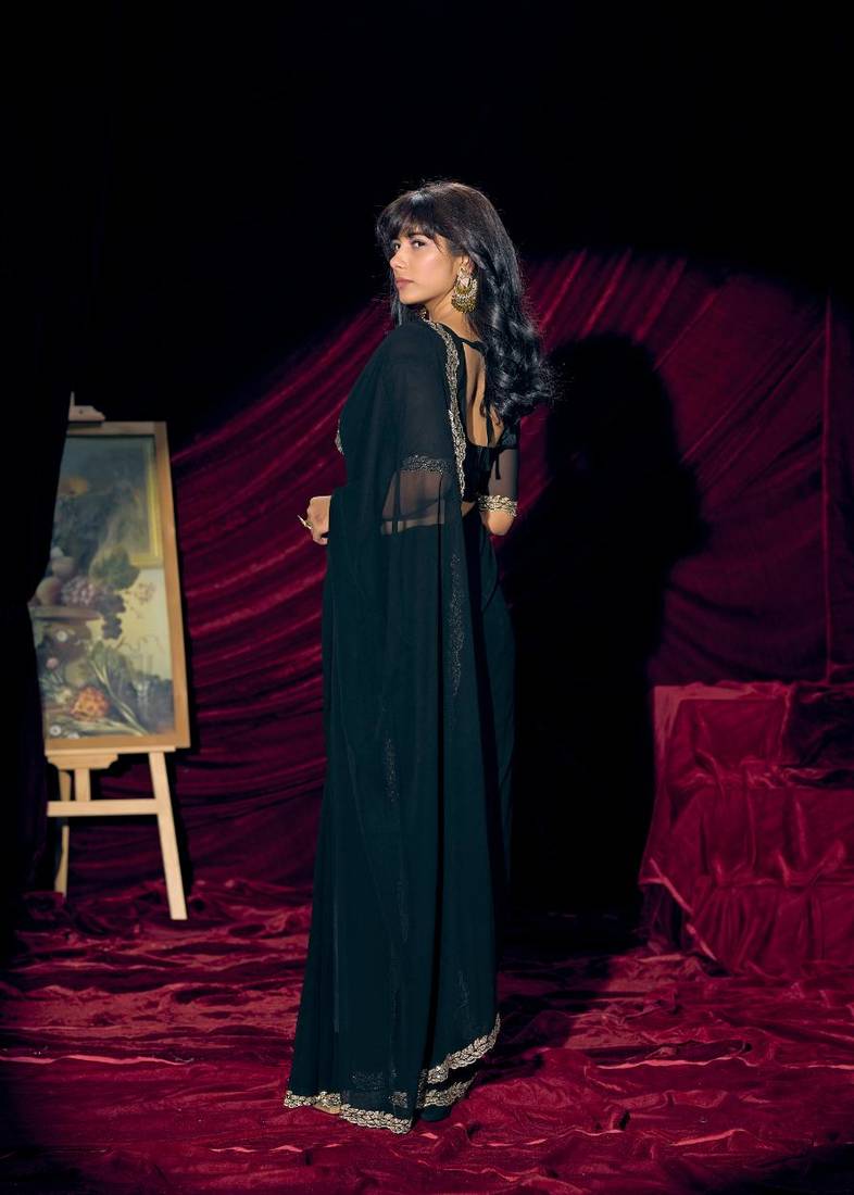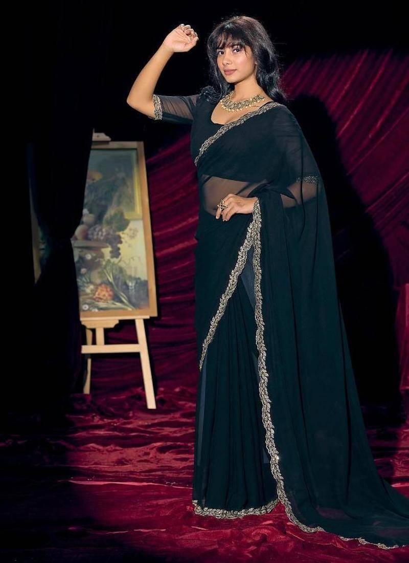 | Product Description | Heavy Hand Work Zircon Border Work Pure Georgette Saree With Blouse Un Stitched |